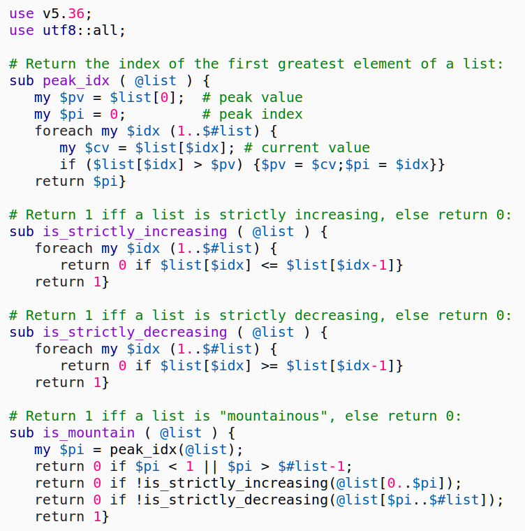 Robbie Hatley’s Solutions, in Perl, for The Weekly Challenge #355 (“Thousand Separator” and “Mountain Array”)